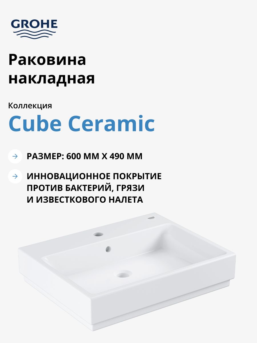 Установка - Накладная; Крыло - Отсутствует; Число основных чаш - 1; Диаметр слива, мм - 46; Форма - Прямоугольник; Покрытие - Антибактериальное; Количество предметов в комплекте - 1; Глубина, см - 49; Вес товара, г - 18000; Тип - Раковина; Цвет - Альпин-белый; Материал - Керамика;